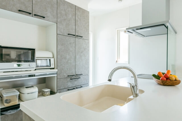 上手に収納スペースを作ることで、カウンタートップをすっきりと保ち、より広々とした感じを演出できます。