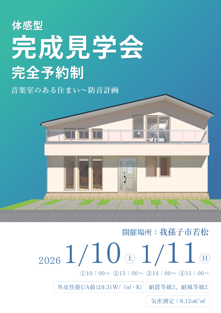 お施主様のご厚意で「体感型完成見学会」を開催いたします。