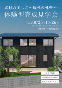 体感型構造見学会のお知らせ 2025年9月6日(土)・7日(日) 素材の美しさ~焼杉の外壁~